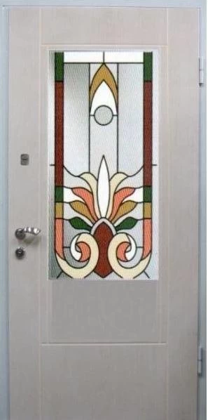 Входные двери в Арске с применением декора витражом изготавливаются из стального профиля, придающего прочность конструкции, а сама витражная вставка обладает высокой взломостойкостью, поскольку для витражных композиций используется специальное стекло, обработанное особым образом. Усилить надежность витражного элемента можно с помощью использования декоративных кованных решеток.