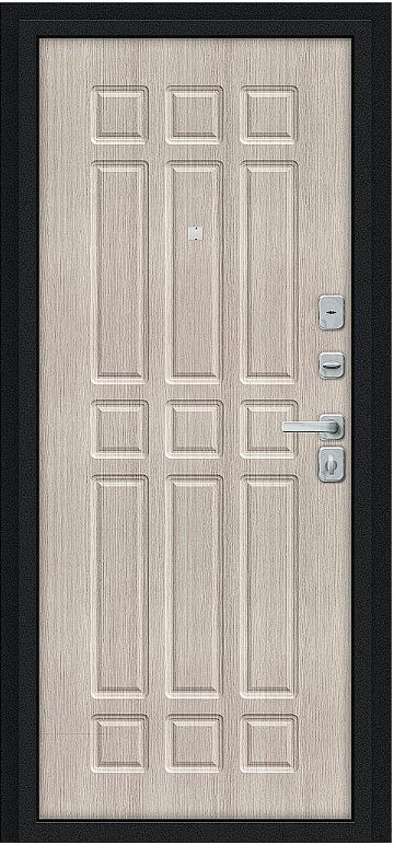 Надежная входная Дверь Браво Мило МФ/BChrome Букле черное/Cappuccino Melinga премиум класса по цене 33 199 руб. Большая толщина стали защитит от проникновения в ваш дом, квартиру или коттедж. Используется очень качественная фурнитура: замки, цилиндры, ручки, защелки. Покрытие и отделка двери изготовлено под внимательным контролем производителя. Дверь имеет долгий срок службы и гарантию.