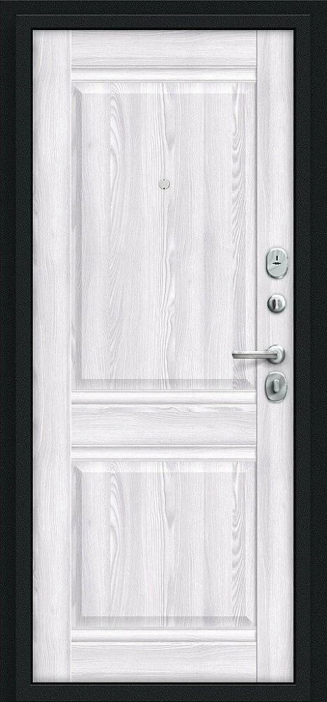 Надежная входная Дверь Браво Некст Kale Букле черное/Riviera Ice премиум класса по цене 35 369 руб. Большая толщина стали защитит от проникновения в ваш дом, квартиру или коттедж. Используется очень качественная фурнитура: замки, цилиндры, ручки, защелки. Покрытие и отделка двери изготовлено под внимательным контролем производителя. Дверь имеет долгий срок службы и гарантию.