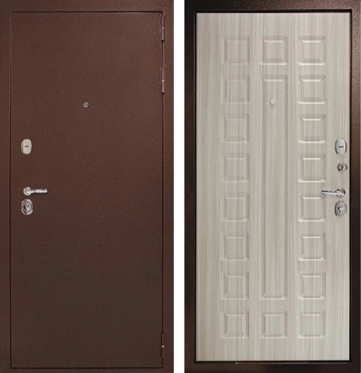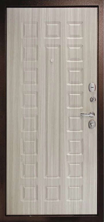 Надежная входная Дверь Рубикон 1 Медь Сандал белый премиум класса по цене 32 519 руб. Большая толщина стали защитит от проникновения в ваш дом, квартиру или коттедж. Используется очень качественная фурнитура: замки, цилиндры, ручки, защелки. Покрытие и отделка двери изготовлено под внимательным контролем производителя. Дверь имеет долгий срок службы и гарантию.