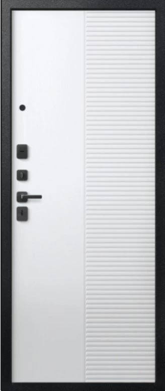 Надежная входная Дверь V-18 Черный муар + Кашемир графит - Кашемир Белый премиум класса по цене 46 449 руб. Большая толщина стали защитит от проникновения в ваш дом, квартиру или коттедж. Используется очень качественная фурнитура: замки, цилиндры, ручки, защелки. Покрытие и отделка двери изготовлено под внимательным контролем производителя. Дверь имеет долгий срок службы и гарантию.